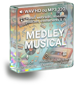 Un medley est une séquence musicale comprenant des enchaînements rythmés. C'est une production efficace pour dynamiser votre spot pub radio, podcast, dj set...et même dans un espace pub pour réaliser un comblage.